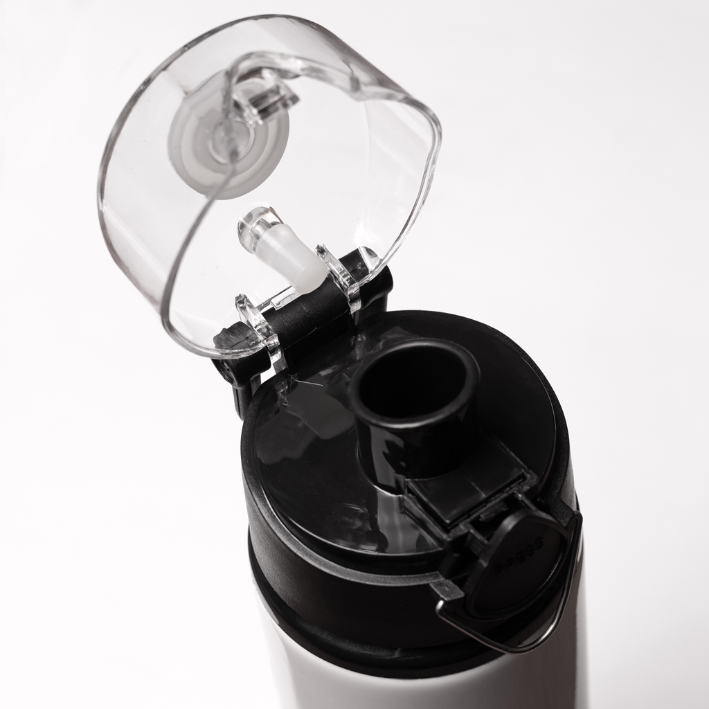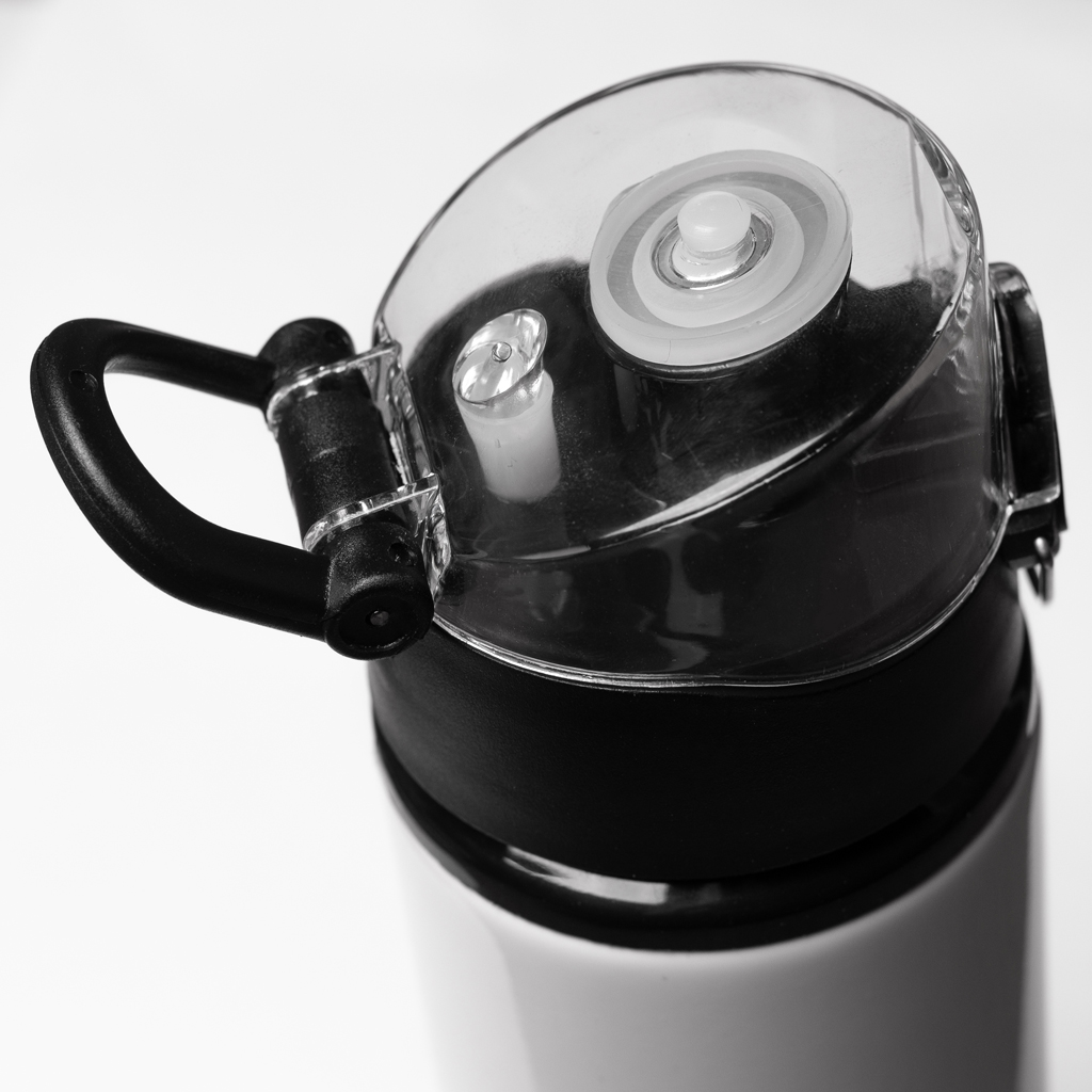 750 ml športová fľaša so skrutkovacím uzáverom. Veko je vybavené praktickým očkom na uchopenie alebo zavesenie a hygienickým plastovým uzáverom náustku, ktorý zabraňuje rozliatiu nápoja.